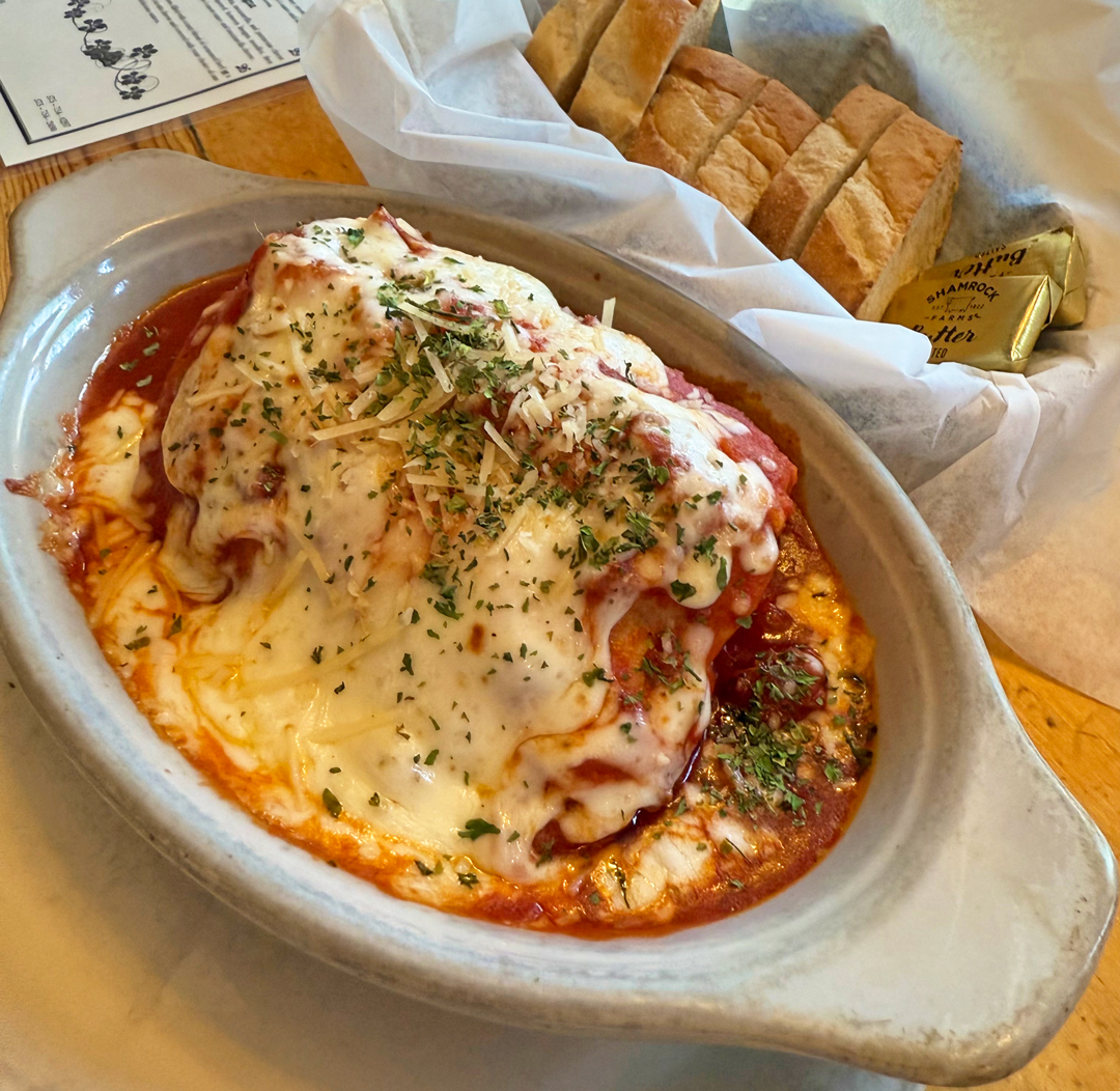 From Sheehan’s, we walked next door to Capo’s Italian restaurant for dinner. We had been told that we absolutely had to order the lasagna with meat marinara sauce. The story goes that it was the owner’s great-grandpa’s recipe and he had to travel to Sicily to get it. Uhhh, yes please! To start, though, we went New Mexican, pairing the green chile stew with a Greenie Peak Wheat from Red River Brewing & Distillery, located just down the street. The stew was spicy and delicious, with chunks of pork and potato, and the beer was light in color but deep in flavor, with a bounce of fruitiness drawn out by the slice of orange squeezed into it. The lasagna arrived so quickly I didn’t have a chance to finish the beer and order wine from their small list, featuring a handful of Italian wines as well as offerings from the two wineries we’d just visited, but the lasagna lived up to its reputation: It had lots of gooey cheese and the sauce was tangy with a wonderful mix of herbs and spices.