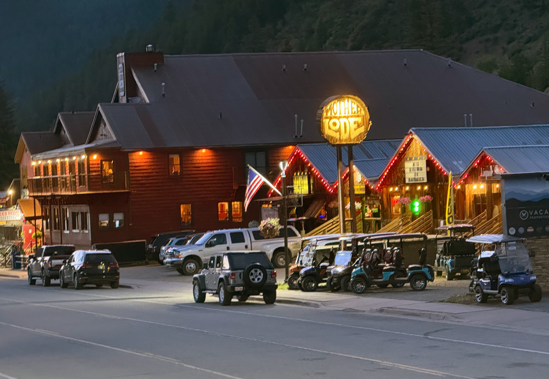 Taking our tour to the west end of Main Street, we popped into Sheehan Winery’s tasting room. Tucked into the Alpine Lodge building, the large front patio features bar seating facing the street and a smattering of tables and chairs under a crisscross of strung lights. The bright yellow and blue bar seats, bedecked with hanging pots packed with beautiful flowers, conjured thoughts of European bistros. Inside, the tasting room is open and modern, with a square bar surrounded by chairs. I ordered a glass of cabernet franc, a wine that presents the varietal’s telltale notes of bell pepper along with ripe red berry and a pleasant, easy finish—a perfect red for those still-hot months of fall. Relaxing on the patio, we soon found ourselves trading recommendations with other tourists and residents that split their time between Red River and “home,” mostly Texas.