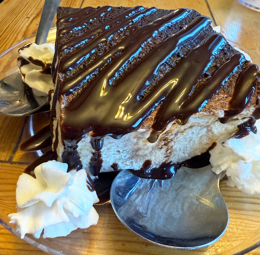 Self-restraint was required to push the dish away in order to save room for one of their fabulous desserts. We opted to share the tiramisu. Rich and boozy, it had the traditional dark chocolate and coffee notes, with distinct cream-filled layers and a solid alcoholic kick. The casual atmosphere at Capo’s exudes Red River’s old-timey feel, and we had the fortune to be seated in the most coveted seat in the house, the table closest to the doors leading to the deck that overlooks the river, with a view right up the ski valley chairlift.