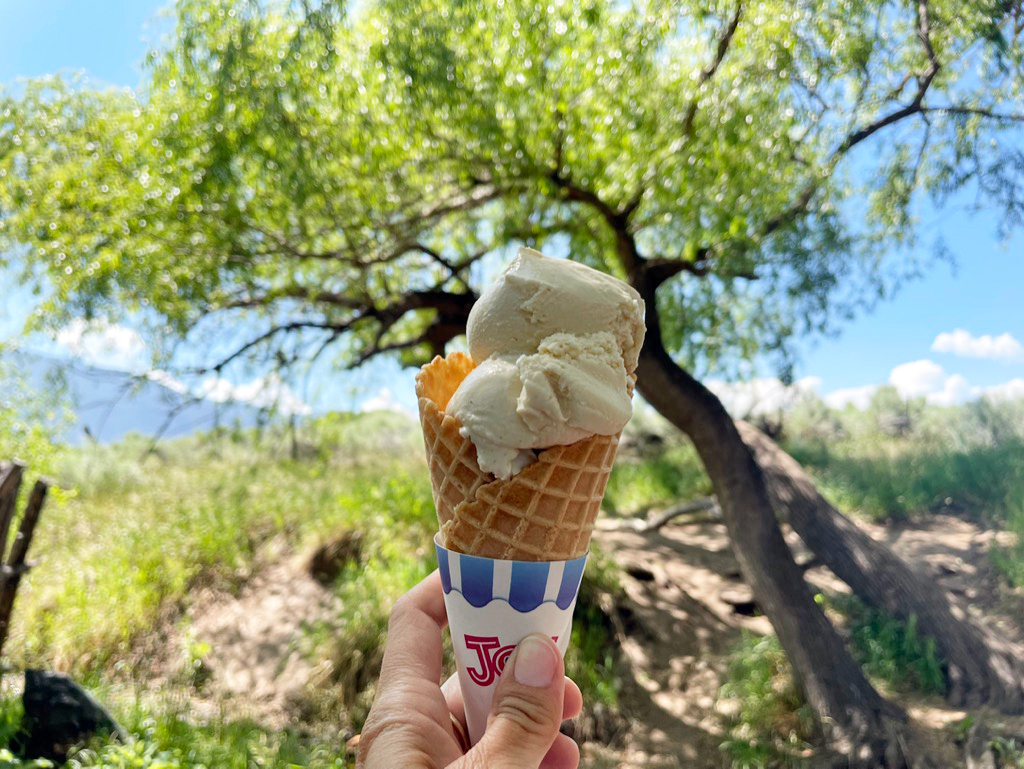 I found Hello Sweet Cream at CHOMP food hall in downtown Santa Fe, but they’ve since moved out of that location, so, at least for now, you’ll have to make the trip to Eldorado to sample their goods. Their small menu achieves a nice balance between classic flavors and house inventions, like one pairing blue corn with pinon brittle from Señor Murphy Candymaker in Old Town Albuquerque. They’ve also been known to experiment with customer ideas, says VanderGiesen. “That’s the fun of staying small—it keeps us connected to the craft and the community.”