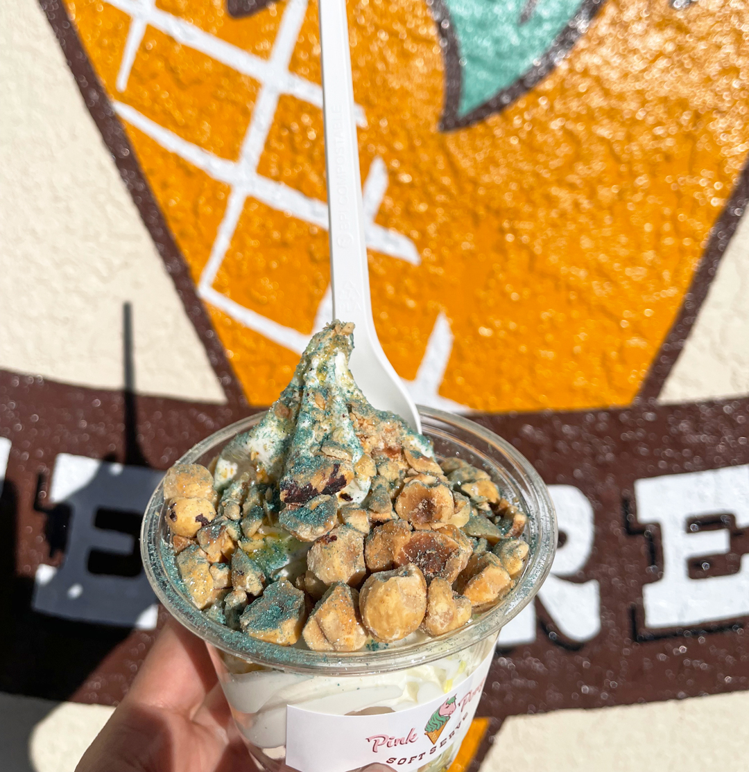 Pink Pony started its life as a food truck serving Santa Fe, then opened a brick-and-mortar in the tiny shop that was formerly home to Tonari No Mise, where they’ve cultivated the same kind of quiet but devoted following as their predecessors. The people who work here, at least in my experience, are gorgeously kind. The seating inside is limited—there’s bar seating along the window, as well as a couple chairs at one small table—but there’s also a bench outside, and departing customers generally seem to make room for new arrivals. I like the intimacy of the space, perhaps partly because it makes me feel okay about slipping in for a sundae cup on my way from one errand to the next. The lightness of soft serve doesn’t hurt.