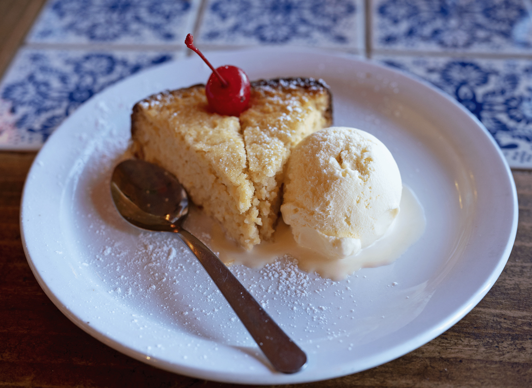 Rounding off your visit to the La Mesa eatery, you must try the pastel de elote: a corn cake served warm with vanilla ice cream on the side and a maraschino cherry on top. Orozco said pastel de elote is very common in Mexico, but is often similar to flan. He decided to change things up with the consistency—the cake is more like a moist corn bread than a custard—and said he also uses half white corn from Mexico and half yellow corn from New Mexico in the recipe, once again blending flavors. “It was an experiment,” Landeros said. Not too sweet on its own, the more savory flavors of corn pop when you take a spoonful with cold ice cream on top. It’s perfect for sharing, or keeping all to yourself.