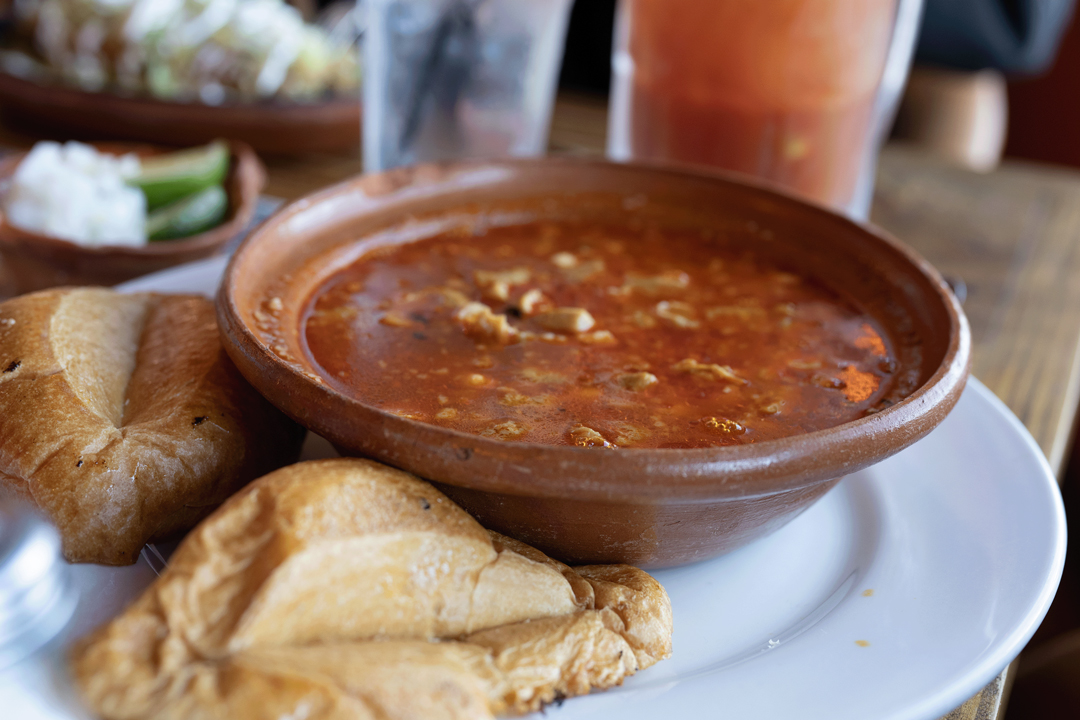 If you visit on a weekend, you can try the restaurant’s red chile menudo, served alongside two fresh bolillos for your dipping pleasure. I’m not personally a menudo fan, but I have it on good authority—my mom—that theirs is spicy, bold, and hearty without being too heavy. And if you’re there on a Sunday, you may experience being serenaded with traditional and contemporary Spanish songs by members of Mariachi Aguilas de Las Cruces. A table near me requested “El Noa Noa” and the dining room turned into a dance party for musicians and patrons alike. Orozco’s passion may be in the kitchen, but you’ll also see him wander into the dining area from time to time, mingling with customers and enjoying the music.