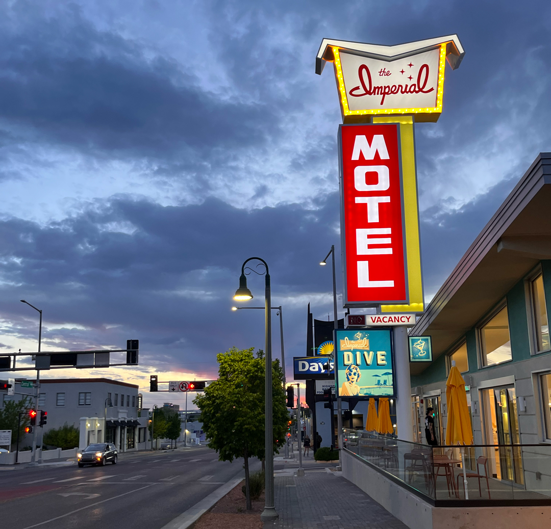 Of course, the Route 66 nostalgia that’s palpable all along Central Avenue in Albuquerque also has something to do with the ongoing revival of hotels and their respective bars here. Two of the places mentioned below (ARRIVE and Hotel Zazz) are products of multimillion-dollar public-private renovation projects undertaken in the last several years, both developed from the bones of hotels originally built in the ’60s and ’70s; beyond these, The Imperial, El Vado Motel, and the Monterey Motel have all had similar treatments. Clearly, these places are being banked on to economically boost a downtown that has seen many attempts at revitalization come and go.